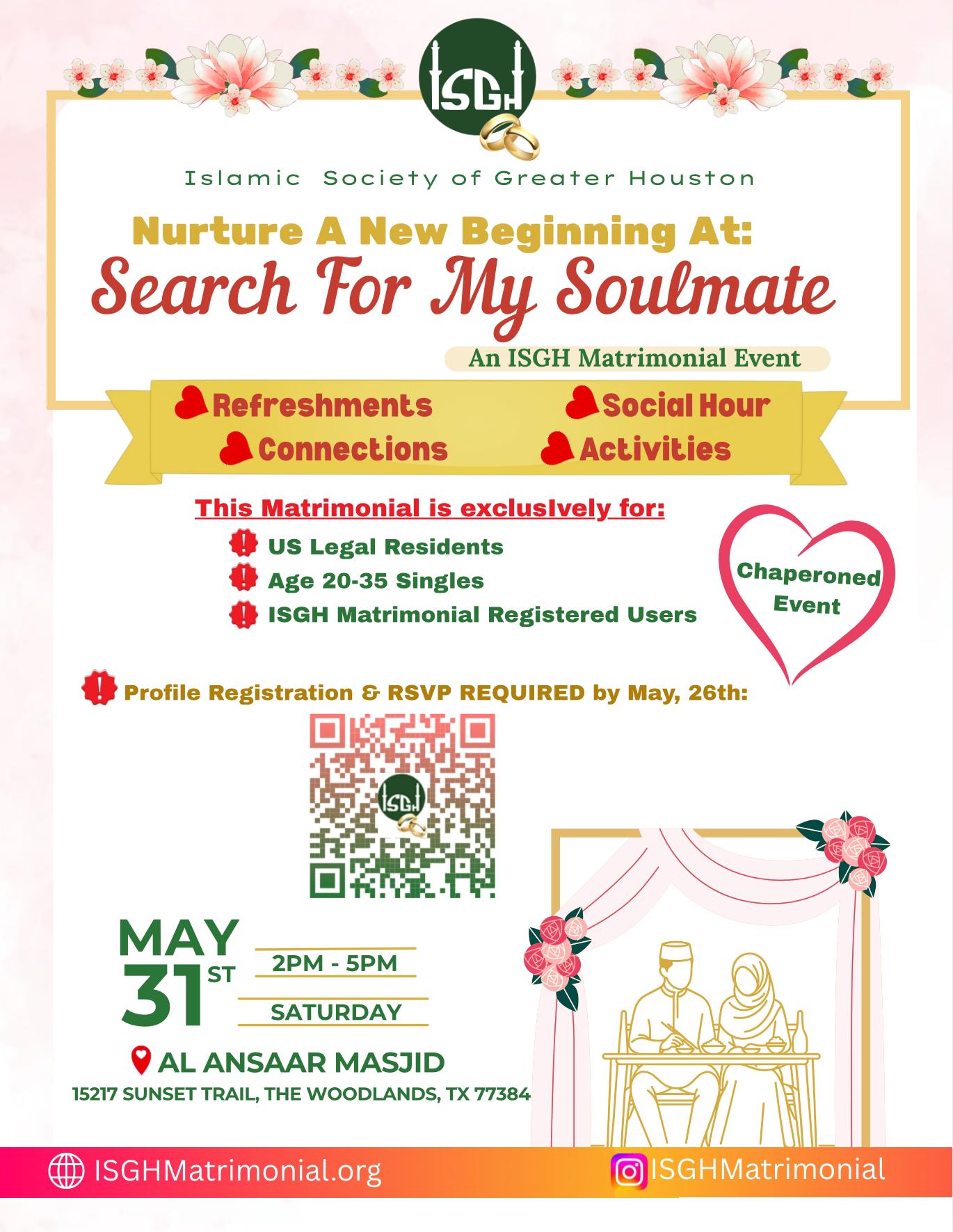 RSVP Required to attend the Matrimonial event on May 31st as there are limited spots